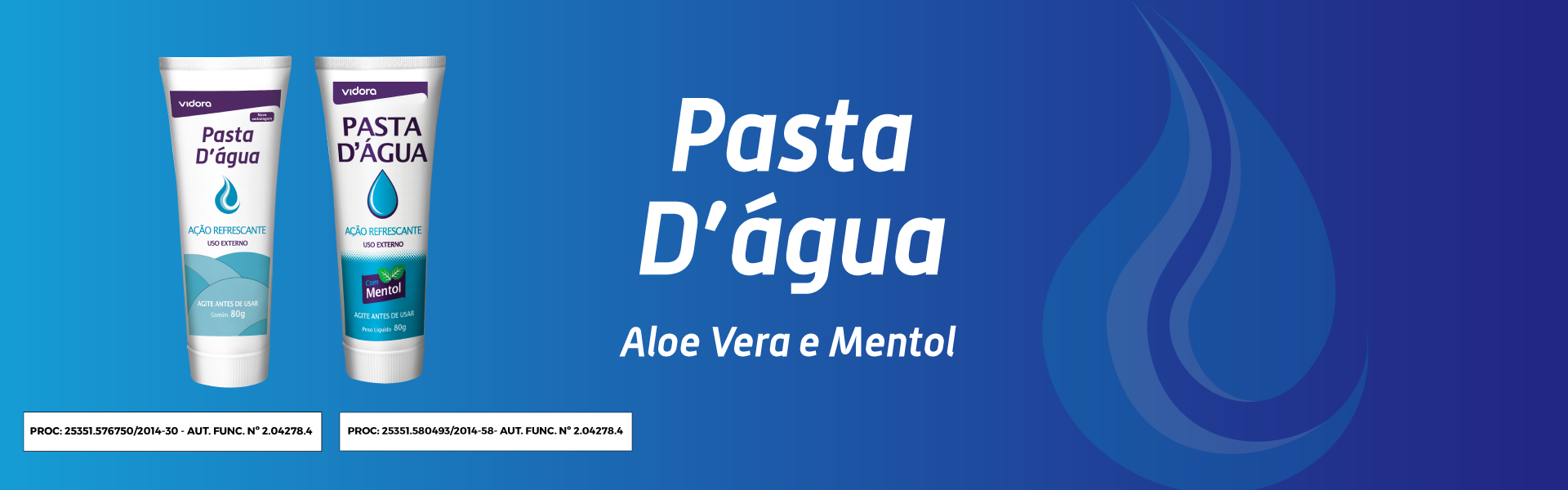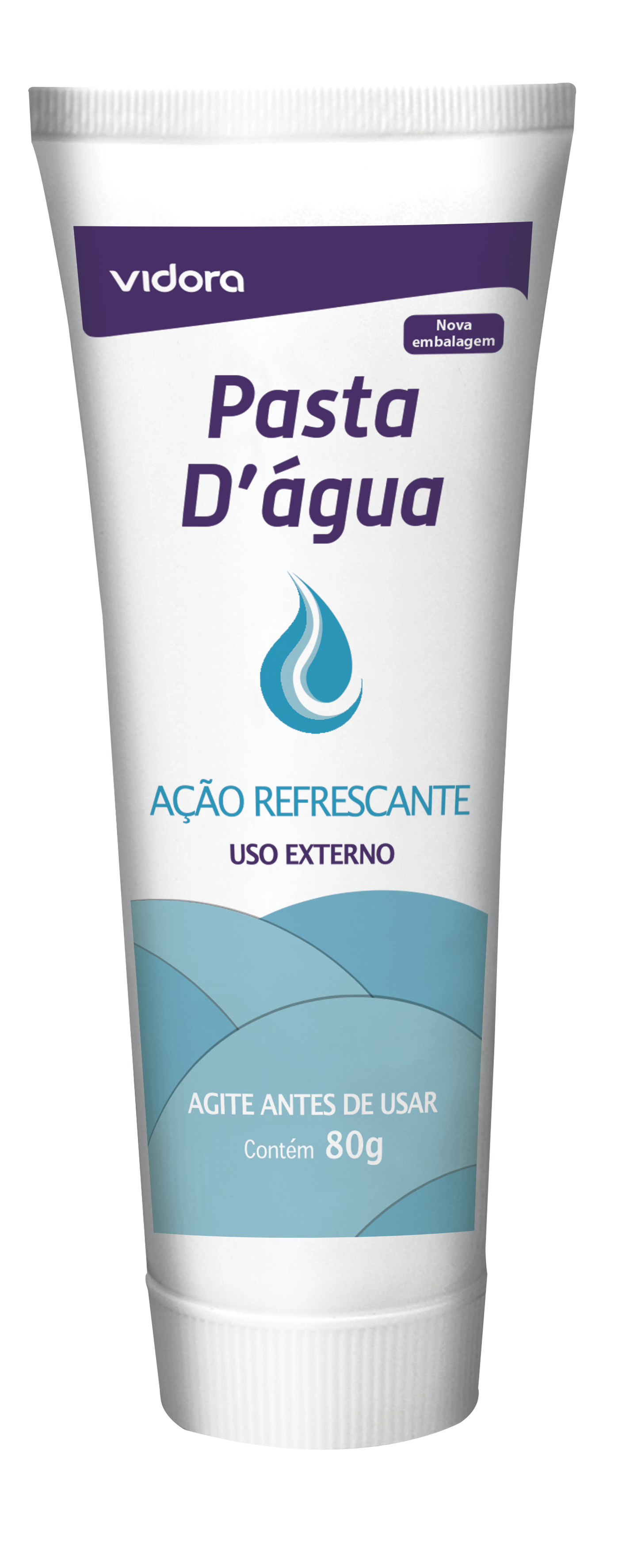A Pasta D`Água possui formulação com óxido de zinco e aloe vera, formando uma camada protetora e com ação refrescante sobre a pele.